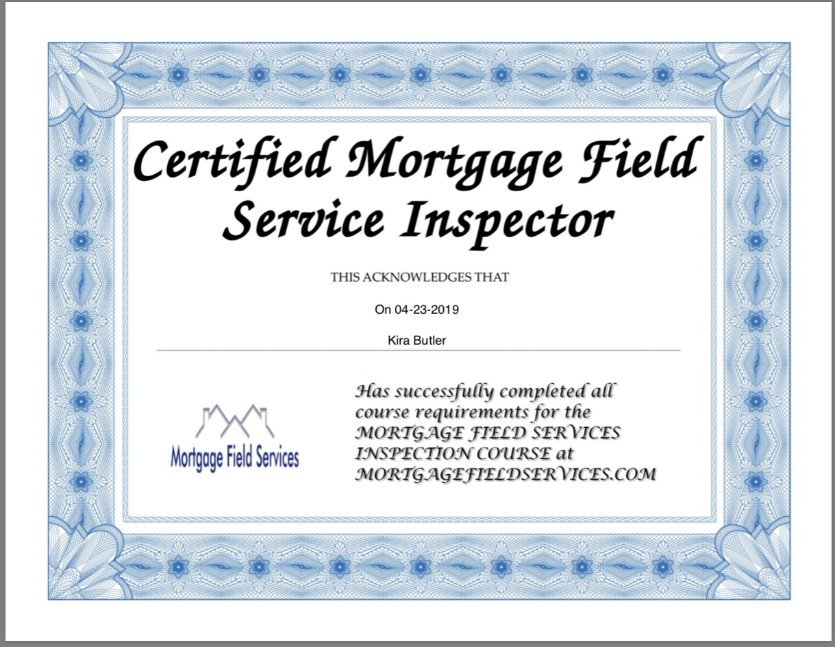 Certified Mortgage Field Services Inspector from http://MortgageFieldServices.com